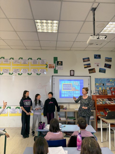 Οι μαθητές και οι μαθήτριές μας είχαν την τιμή να παρακολουθήσουν την εξαιρετικά ενδιαφέρουσα και εμπνευσμένη ομιλία της κας Αναστασίας Καραδήμου, η οποία ανέδειξε τη σπουδαιότητα της ελληνικής γλώσσας ως ενός ζωντανού πολιτισμικού θησαυρού με αδιάλειπτη παρουσία χιλιάδων ετών. Ιδιαίτερη έμφαση δόθηκε στη διαχρονικότητα, τον πλούτο και την επιρροή της ελληνικής γλώσσας στον παγκόσμιο πολιτισμό, στις επιστήμες και στις τέχνες.