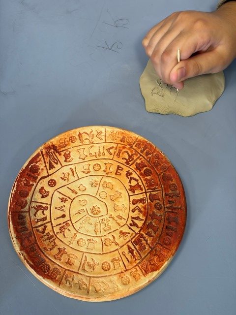 Στη συνέχεια, οι μαθητές συμμετείχαν σε βιωματική δράση δημιουργικής γραφής και ιστορικής αναβίωσης. Εμπνευσμένοι από τις αρχαίες πρακτικές γραφής, κατασκεύασαν τις δικές τους πήλινες επιγραφές, εφαρμόζοντας τη μέθοδο των «δοστροφηδόν» (βουστροφηδόν) — έναν αρχαίο τρόπο γραφής κατά τον οποίο οι σειρές εναλλάσσονται κατεύθυνση, όπως η κίνηση του βοδιού στο όργωμα.