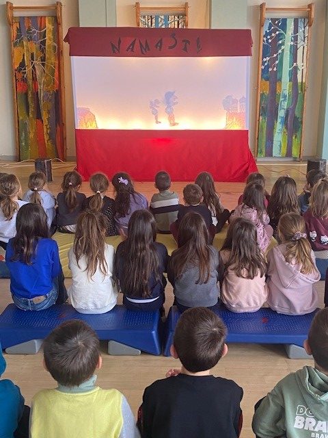 Στον χώρο του σχολείου μας είχαμε τη χαρά να παρακολουθήσουμε μία ξεχωριστή παράσταση Καραγκιόζη από το Θέατρο Σκιών «Ναμαστε», με τον ταλαντούχο καραγκιοζοπαίχτη κύριο Σπύρο Ξυπνητό. Το θέμα της παράστασης ήταν αφιερωμένο στην 25η Μαρτίου, την εθνική μας εορτή, και αποτέλεσε μία όμορφη αφορμή για να γνωρίσουν τα παιδιά μας στοιχεία της ιστορίας και της παράδοσής μας μέσα από τον μαγικό κόσμο του θεάτρου σκιών.