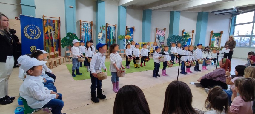 Στο πλαίσιο της παρουσίασης, τα παιδιά μεταμορφώθηκαν σε μικρούς κηπουρούς, φορώντας τις γαλότσες και τα καπελάκια τους, και μέσα από τραγούδια, κίνηση και χορό μοιράστηκαν με όλους το μήνυμα που διαχρονικά καλλιεργεί η φιλοσοφία του σχολείου μας, δηλαδή, την αγάπη, τον σεβασμό και την υπευθυνότητα απέναντι στο φυσικό περιβάλλον. Η δράση αυτή αποτέλεσε μία όμορφη μαθησιακή εμπειρία, όπου η γνώση συνδυάστηκε με τη συνεργασία, τη δημιουργικότητα και τη χαρά της έκφρασης.