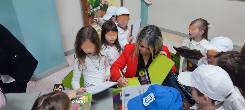 Ιδιαίτερη χαρά για τη σχολική μας κοινότητα αποτέλεσε η παρουσία των ίδιων των συγγραφέων, τις οποίες ευχαριστούμε θερμά που μας τίμησαν, παρακολουθώντας από κοντά την παρουσίαση των παιδιών. Στο τέλος της εκδήλωσης υπέγραψαν τα βιβλία και έκαναν από μία προσωπική αφιέρωση σε κάθε μαθητή ξεχωριστά, χαρίζοντάς τους μία πολύτιμη και τρυφερή ανάμνηση από αυτή τη μοναδική παιδαγωγική εμπειρία.